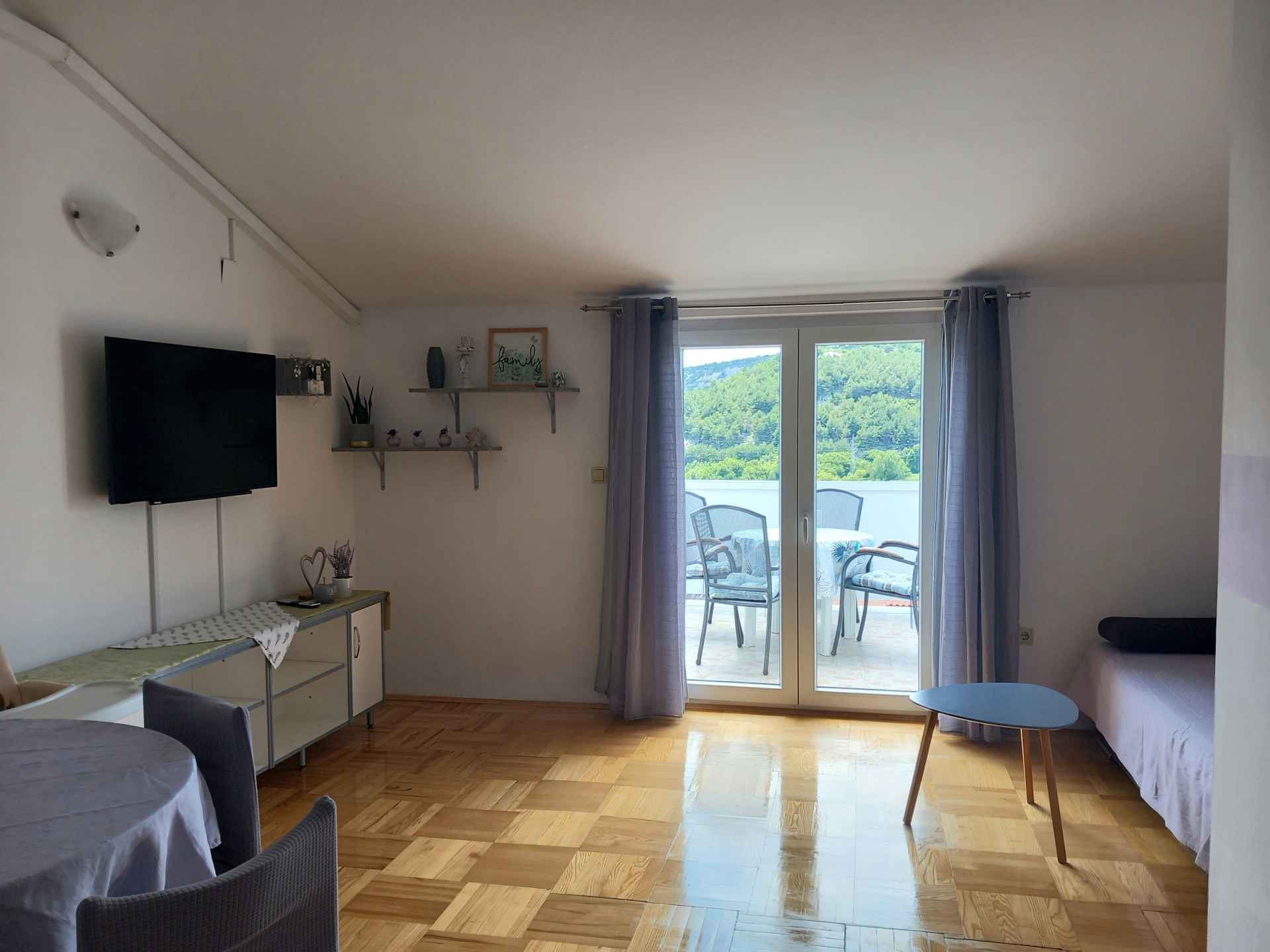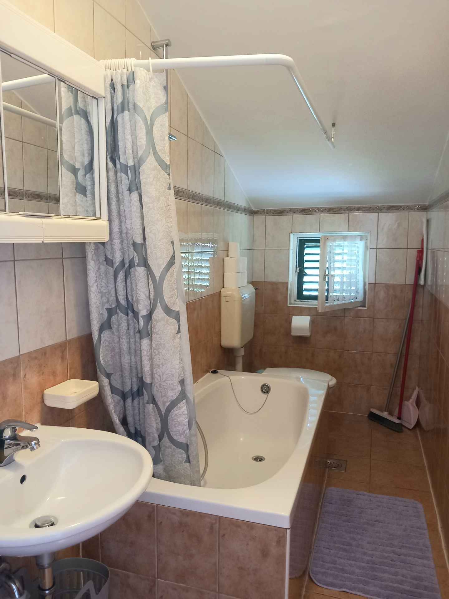 Apartment 4 (75m2); 2 bedrooms, 1 bathroom, open space: kitchen - dining room - living room, hall, and a terrace with seating area and barbecue.